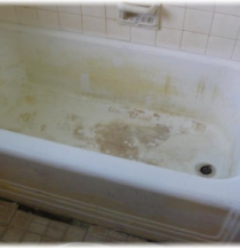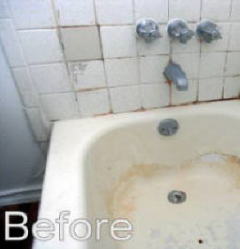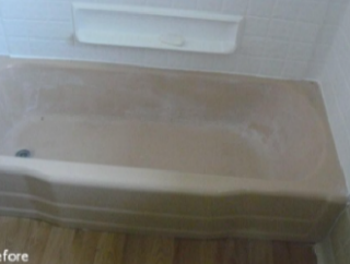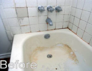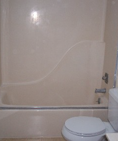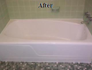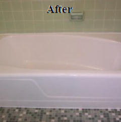 Refinishing is an economical way to beautify your bathroom. When new, your bathtub surface is nice and shiny. As time goes on however, your tub's surface can dull, get damaged by acidic or abrasive cleansers or look outdated. The original homeowner's color choice may not go with your neutral decorating theme. Thetub can be nicked or scratched. Replacing a bathtub is time consuming, expensive and messy. It is now the time for a bathtub resurfacing. This will save up to 80% of the cost of tub replacement.We can do the job in one day, without removing the tub. If there are any repairs to be made, they are done first. Then we use a tried and perfected method to thoroughly clean and prepare the surface before the tub reglazing. After the new coat is applied, in 24 hours your tubis ready to use. It will have the same luster as a new tub, and will be easy to keep looking clean and beautiful.